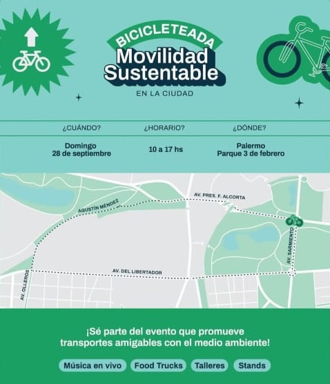 En el marco de la Semana de la Movilidad Sustentable, BA Ecobici invita a una jornada especial con bicicleteada, música en vivo, talleres y actividades para toda la familia en el Parque Tres de Febrero.