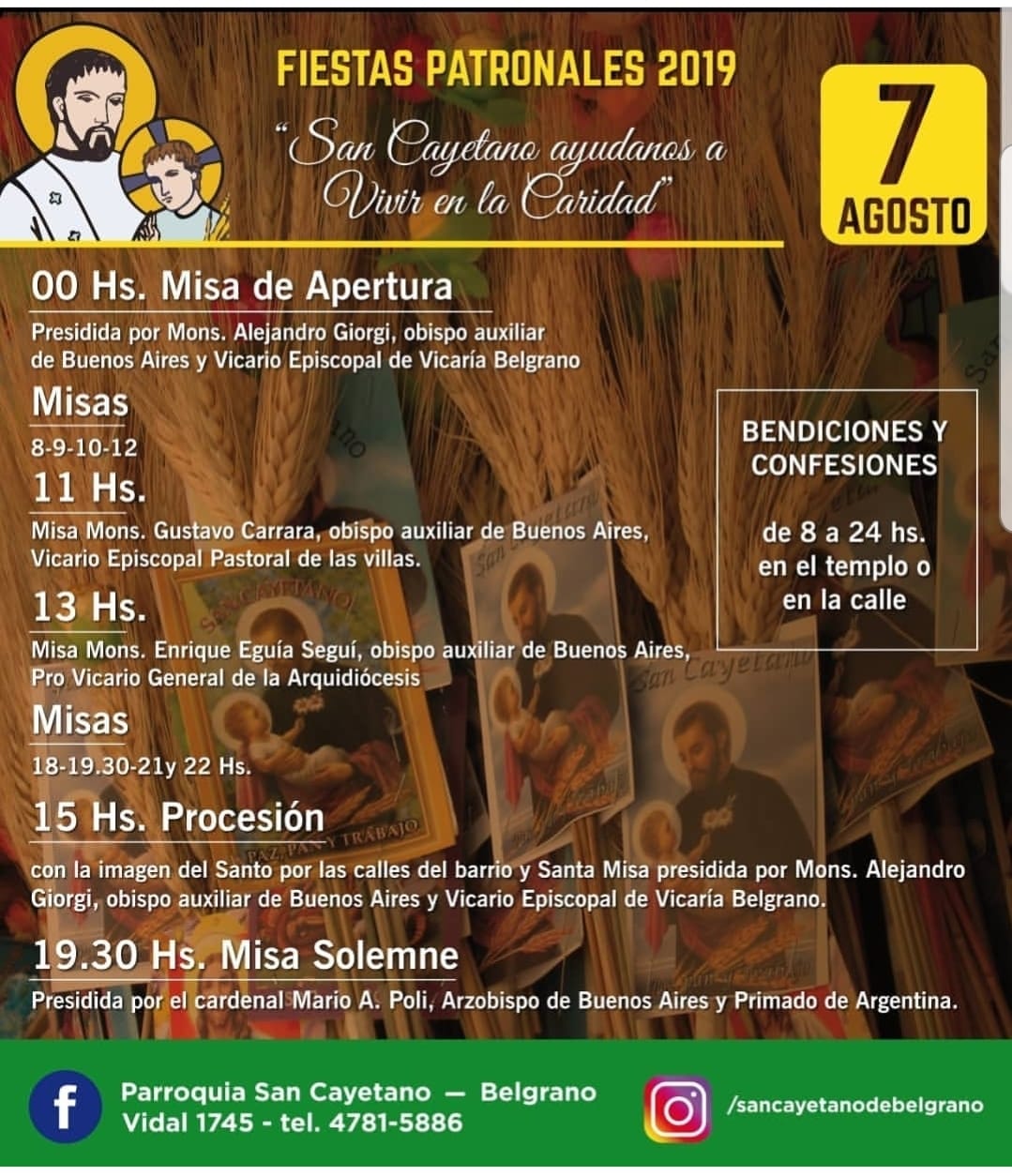 HOY ACERCATE A LA PARROQUIA DE SAN CAYETANO EN BELGRANO VIDAL 1745