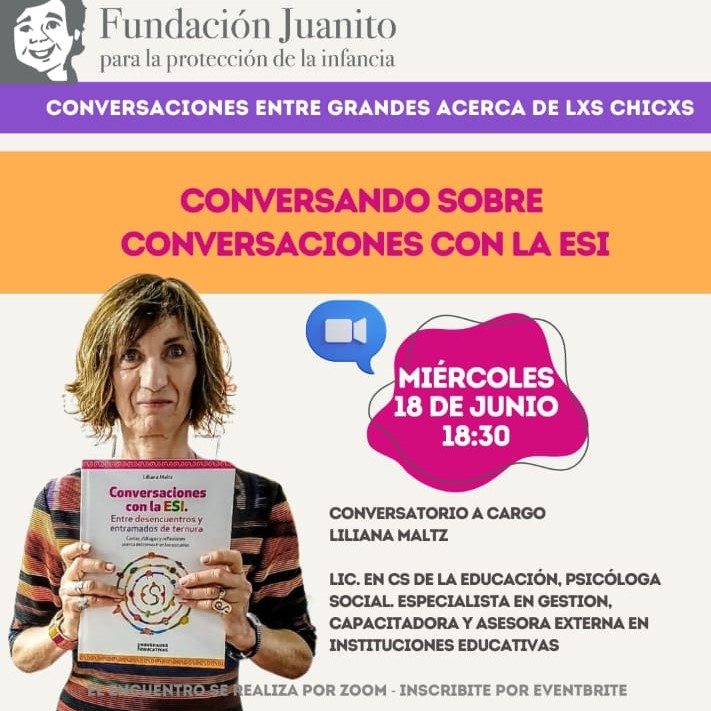 Sumate al nuevo encuentro por zoom el Miércoles 18 de Junio a las 18.30 hs con la Lic. Lili Maltz vamos a estar «Conversando sobre Conversaciones con la ESI»