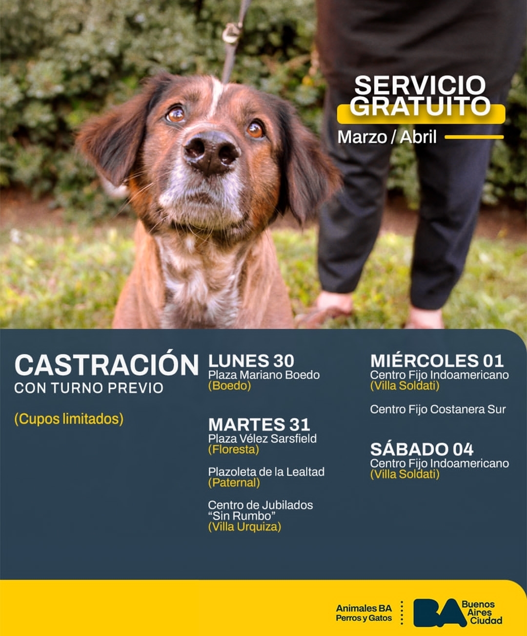 El servicio de Atenciones Veterinarias en elmarco de la Dirección General de Sanidad y Cuidado Responsable de Caninos y Felinos Domésticos, que tiene como objetivo proporcionar las herramientas necesarias para lograr el bienestar de las mascotas. Realiza operativos de castración y vacunación antirrábica gratuitos en todas las comunas de la Ciudad de Buenos Aires.