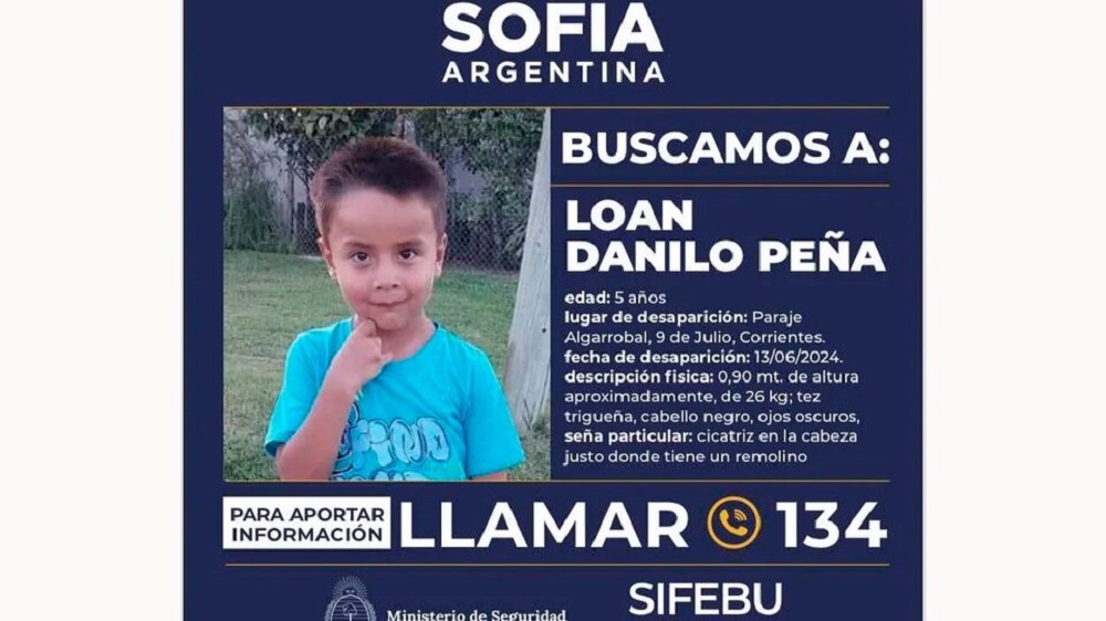 “Los hechos que se investigan ocurrieron el día 13 de Junio de 2024, en horas de la mañana, cuando Loan, de 5 años edad, en compañía de su padre José Peña, fueron a almorzar a la casa de la abuela paterna del menor (Catalina Peña), sito en Paraje Algarrobal, de la Localidad de 9 de Julio, Departamento de San Roque, Provincia de Corrientes, y luego del almuerzo, siendo las 14:00 horas aproximadamente, el menor se fue al monte a consumir naranjas en compañía de otros menores más y tres mayores. Lo cierto del caso es que siendo las 14:20 Hs., estimativamente, cuando se disponían a volver a la casa donde estaban, que queda a unos 600 metros aproximadamente de ese lugar, los mayores se percatan que Loan no estaba, que desapareció del grupo. Hasta el momento no se ha logrado localizar al menor”, describió el Ministerio de Seguridad.