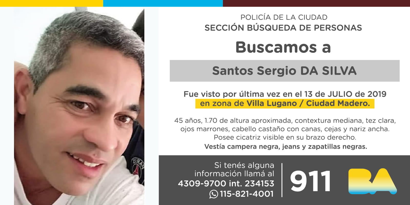 Da Silva de 45 años de edad se encuentra desaparecido desde el 13 de julio de este año y fue visto por última vez en la zona de Villa Lugano.