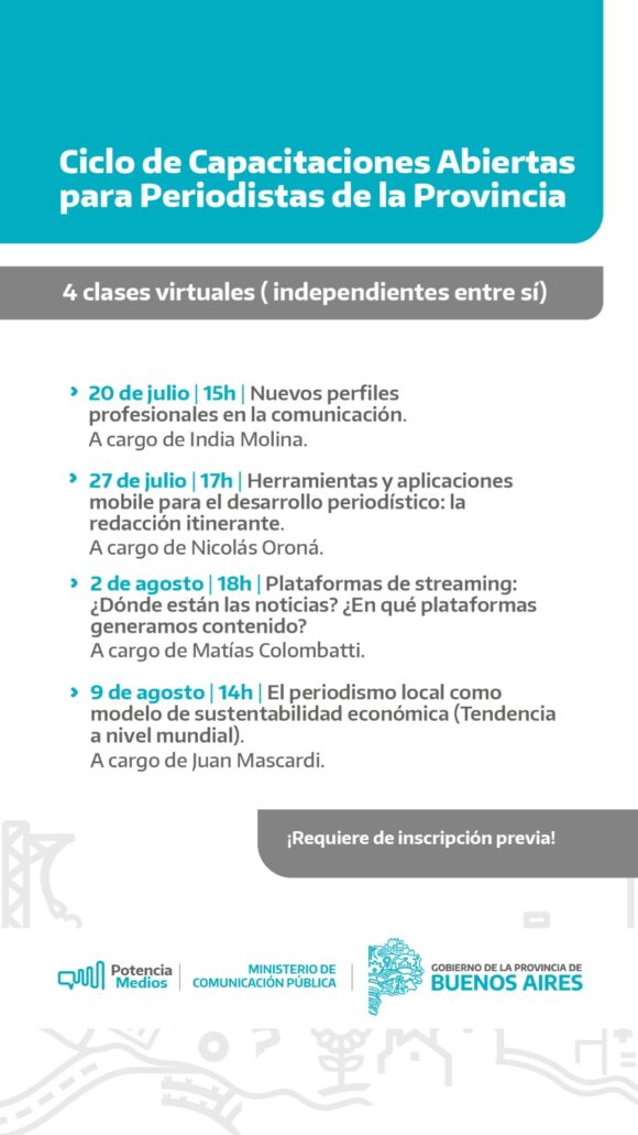 El Ministerio de Comunicación Pública abrió la inscripción al «Ciclo de Capacitaciones Abiertas para Periodistas de la Provincia».