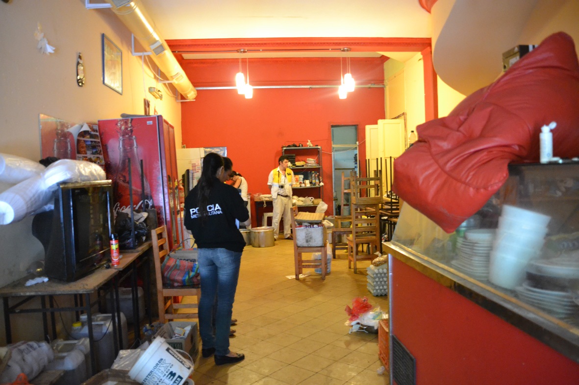 El local se encontraba oculto detrás de persianas metálicas y carecía de habilitación. Las personas que allí trabajaban no contaban en ningún caso con libreta sanitaria; la higiene del lugar era realmente deplorable, los distintos productos (chicha, pollo, hortalizas, arroz, fideos, carne, pescado, ceviche, huevo y otros) se encontraban apoyados directamente en el piso del local, sin ninguna protección y expuesta a todo riesgo de contaminación.