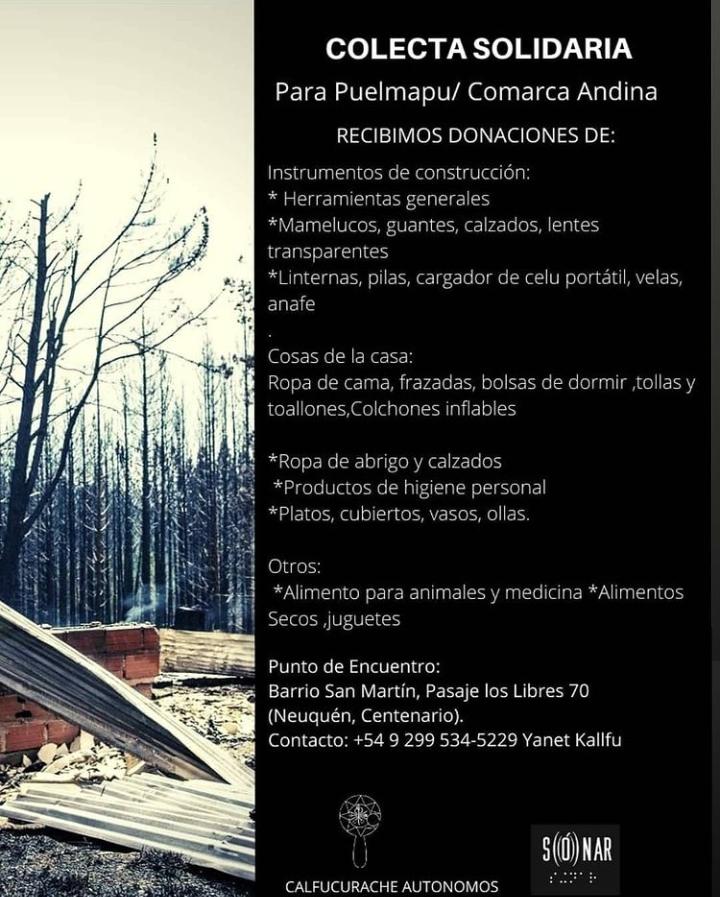 COLECTA SOLIDARIA PARA PUELMAPUCOMARCA ANDINA SE RECIBEN DONACIONES