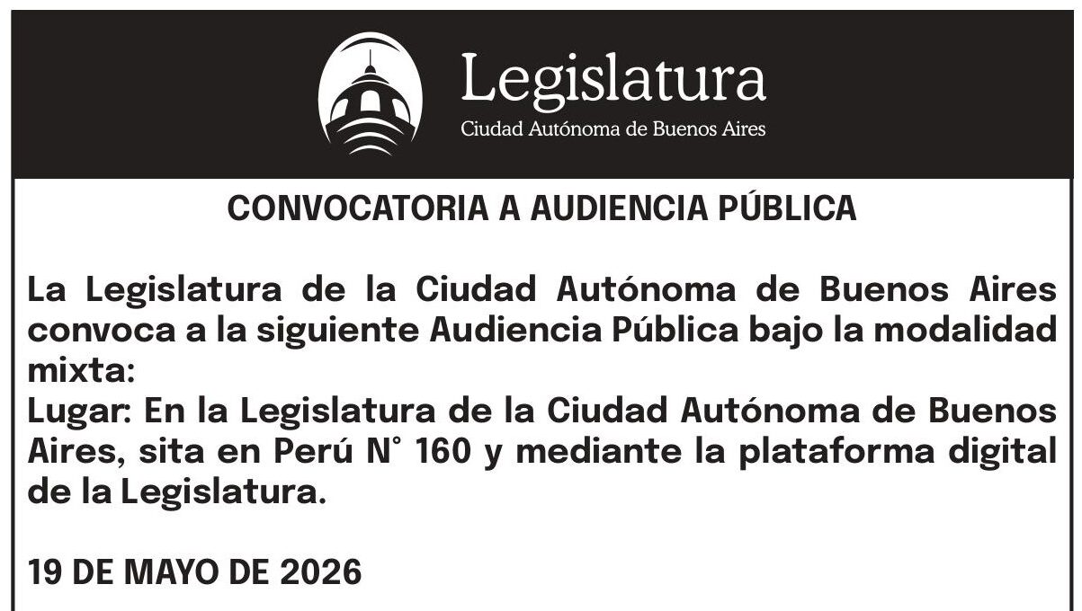 La Legislatura de la Ciudad de Buenos Aires convoca a la siguiente Audiencia Pública, bajo la modalidad mixta:
