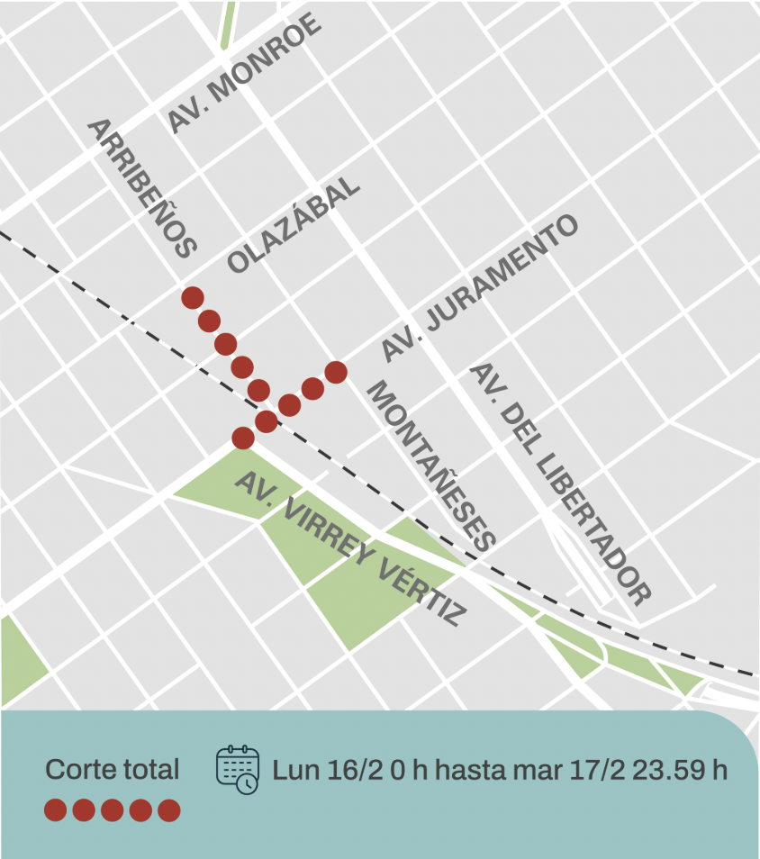 Se realizarán cortes totales en las siguientes arterias del Barrio Chino:Av. Juramento entre Av. Virrey Vértiz y Montañeses (sin afectar las bocacalles)Calle Arribeños entre Olazábal y Juramento (sin afectar la bocacalle de Olazábal)Estos cortes permitirán el normal desarrollo de las celebraciones por el Año del Caballo de Fuego, que incluyen gastronomía típica, artesanías, espectáculos musicales, exhibiciones de artes marciales y las tradicionales danzas del Dragón y los Leones Chinos.Se recomienda a los automovilistas planificar rutas alternativas para circular por la zona durante esos dos días y estar atentos a la señalización correspondiente.