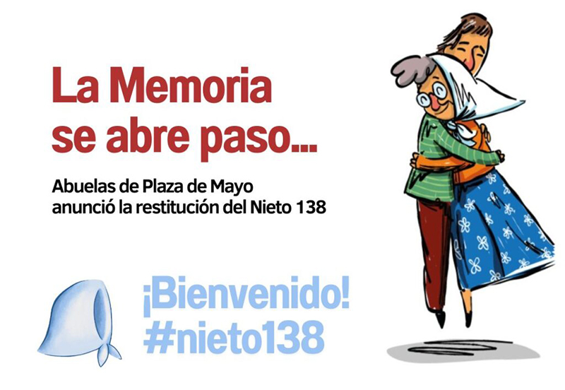 El año 2024 se cierra con la gratificante noticia de la restitución de un nuevo nieto apropiado durante la dictadura cívico-militar de 1976 a 1983 en Argentina, este viernes se anunció la restitución de identidad del nieto recuperado nº 138, nacido en cautiverio de su madre en la ESMA. Es hijo de Marta Enriqueta Pourtalé y Juan Carlos Villamayor, fueron secuestrados el 10 de diciembre de 1976, en la ciudad de Buenos Aires, y es nieto de Rosa Pourtalé.