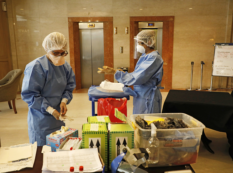 La transformación del hotel en un centro extrahospitalario para pacientes con Covid-19 es un proceso que comienza entre 48 y 72 horas antes de que llegue el primer paciente. Requiere un trabajo coordinado entre las áreas de turismo, operaciones, logística, mantenimiento, bioseguridad y el equipo médico, entre otros.