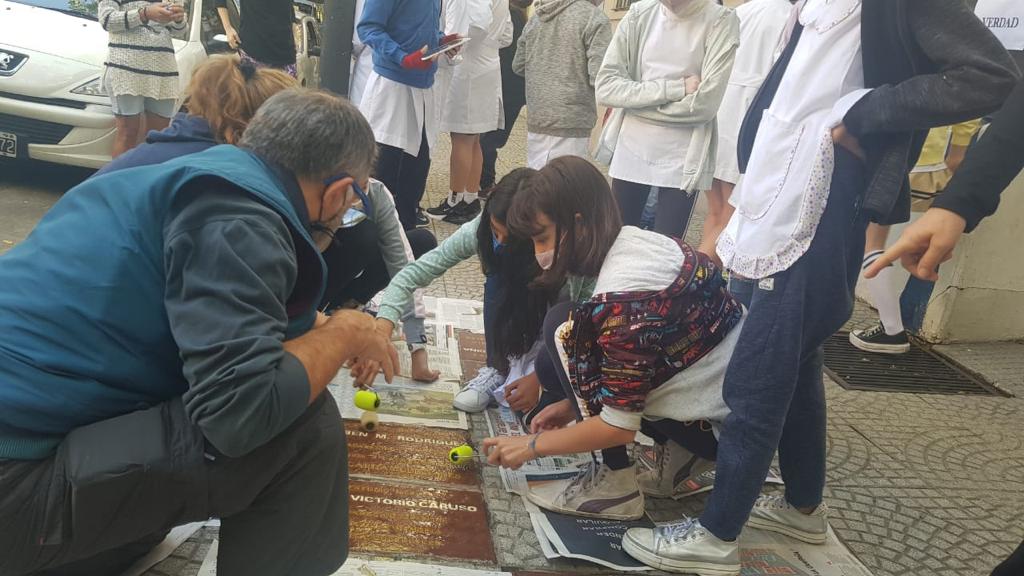 Un momento muy lindo, junto con docentes, alumnos, papás y barrio x la memoria reparando baldosas.