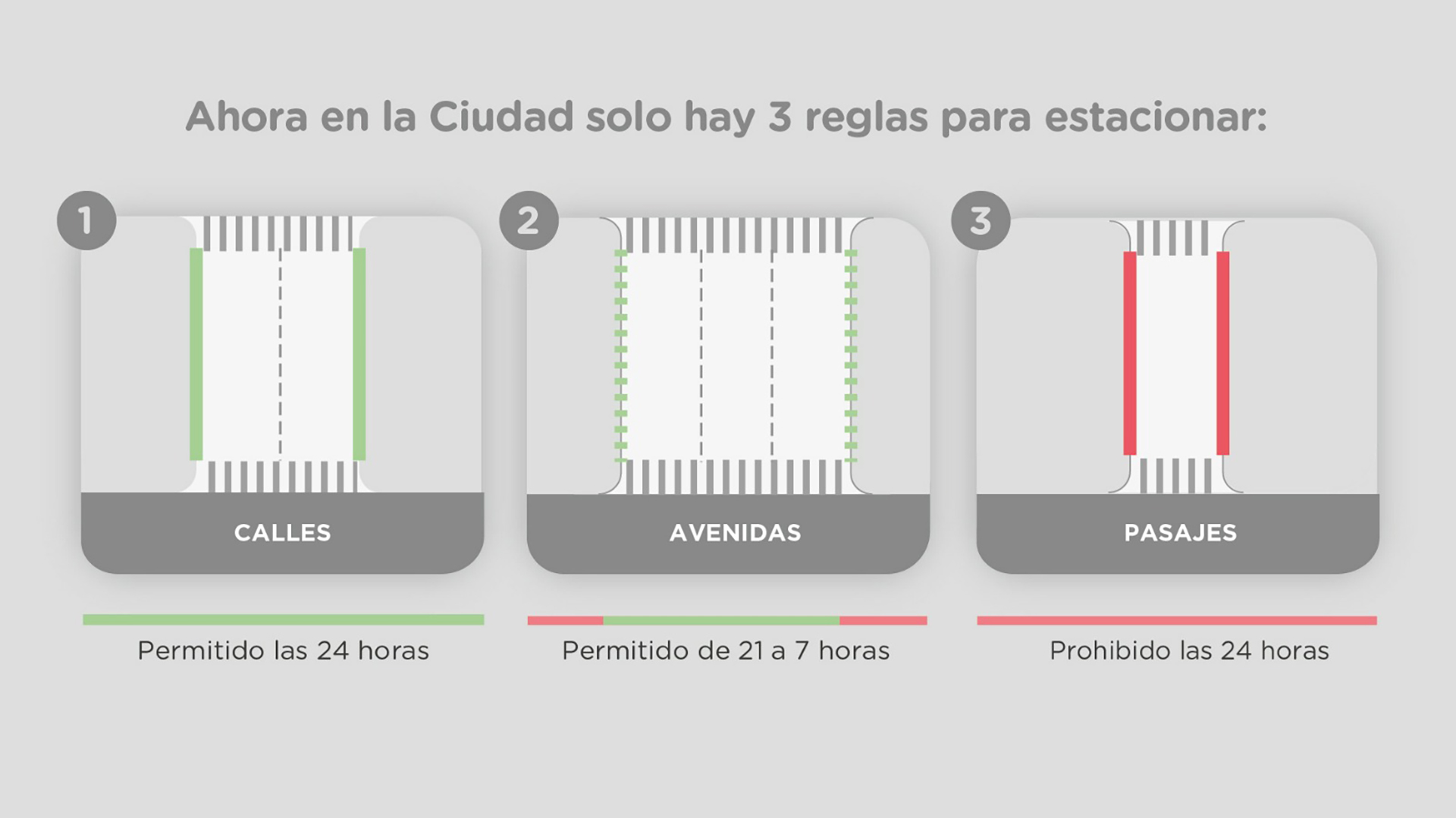 Estas normativas fueron aprobadas por la Legislatura porteña, pasando de 9 reglas generales a 3, donde solamente se señaliza la excepción. Un ejemplo: calle donde esté prohibido estacionar de mano izquierda, una avenida con prohibiciones, o con permitidos diferentes a la regla general que es de 21 a 7 hs. o alguna ciclovía que permita el estacionamiento en paralelo.