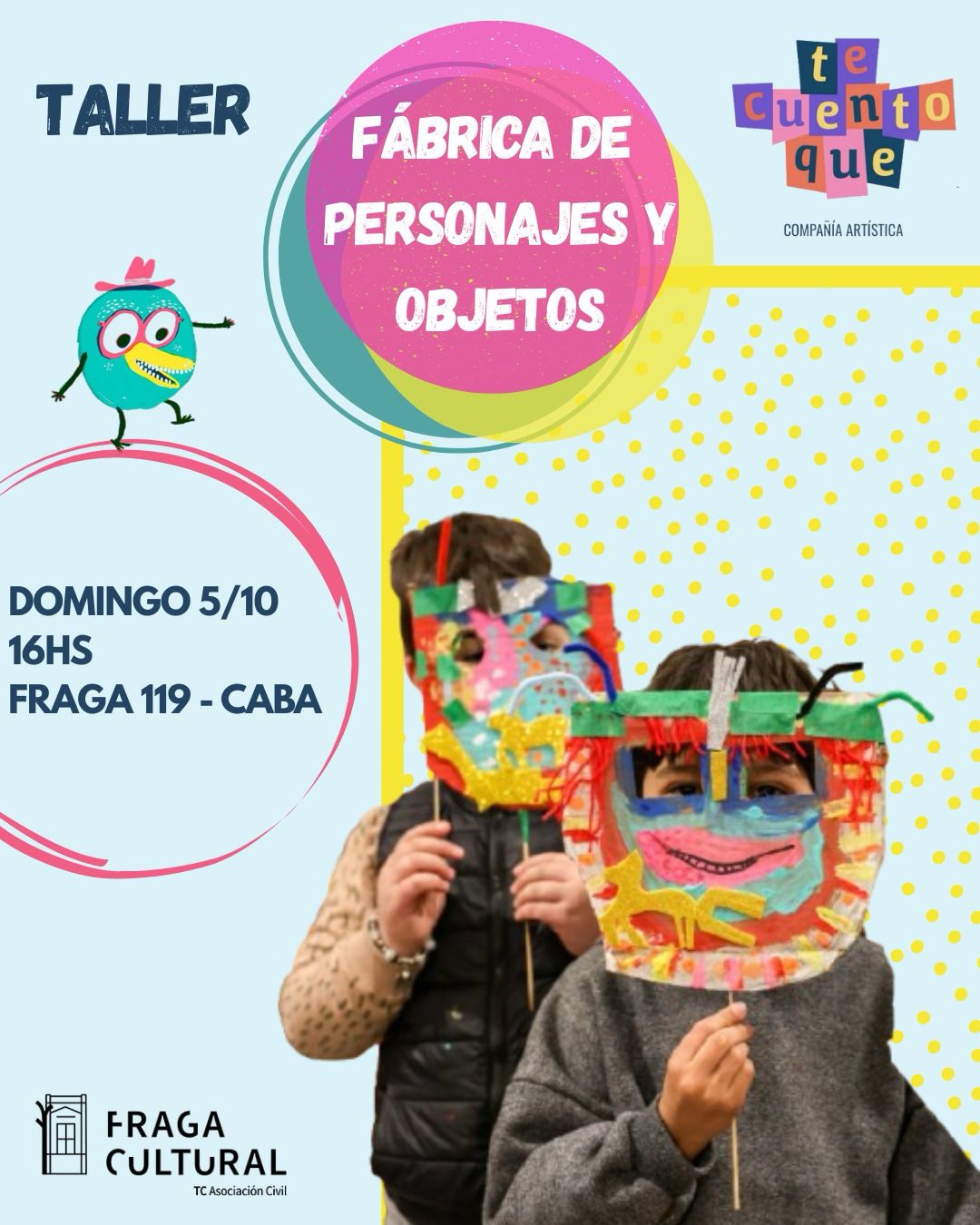 TALLER DE FÁBRICA DE PERSONAJES Y OBJETOS (Para infancias de 4 a 8 años) con la Compañía artística “Te cuento que”!