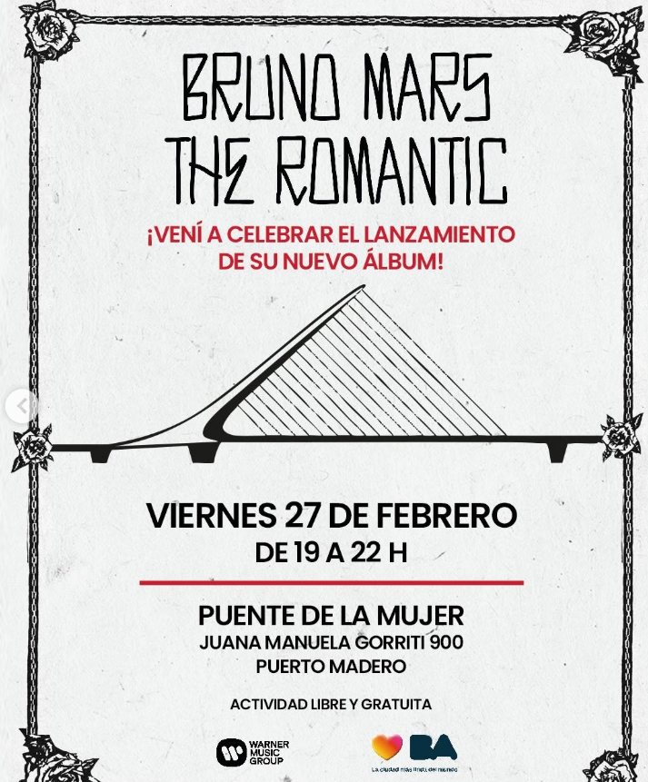 Bruno Mars y el disfrute de su música, arte y romance porteño y «los candados del amor».