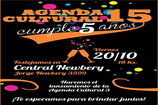 Les cuento que este mes la Agenda Cultural 15 cumple 5 años y nos gustaría festejar con ustedes. Los invitamos el viernes que viene (20/10) a las 18hs a un brindis en la galería Central Newbery, J. Newbery 3599.