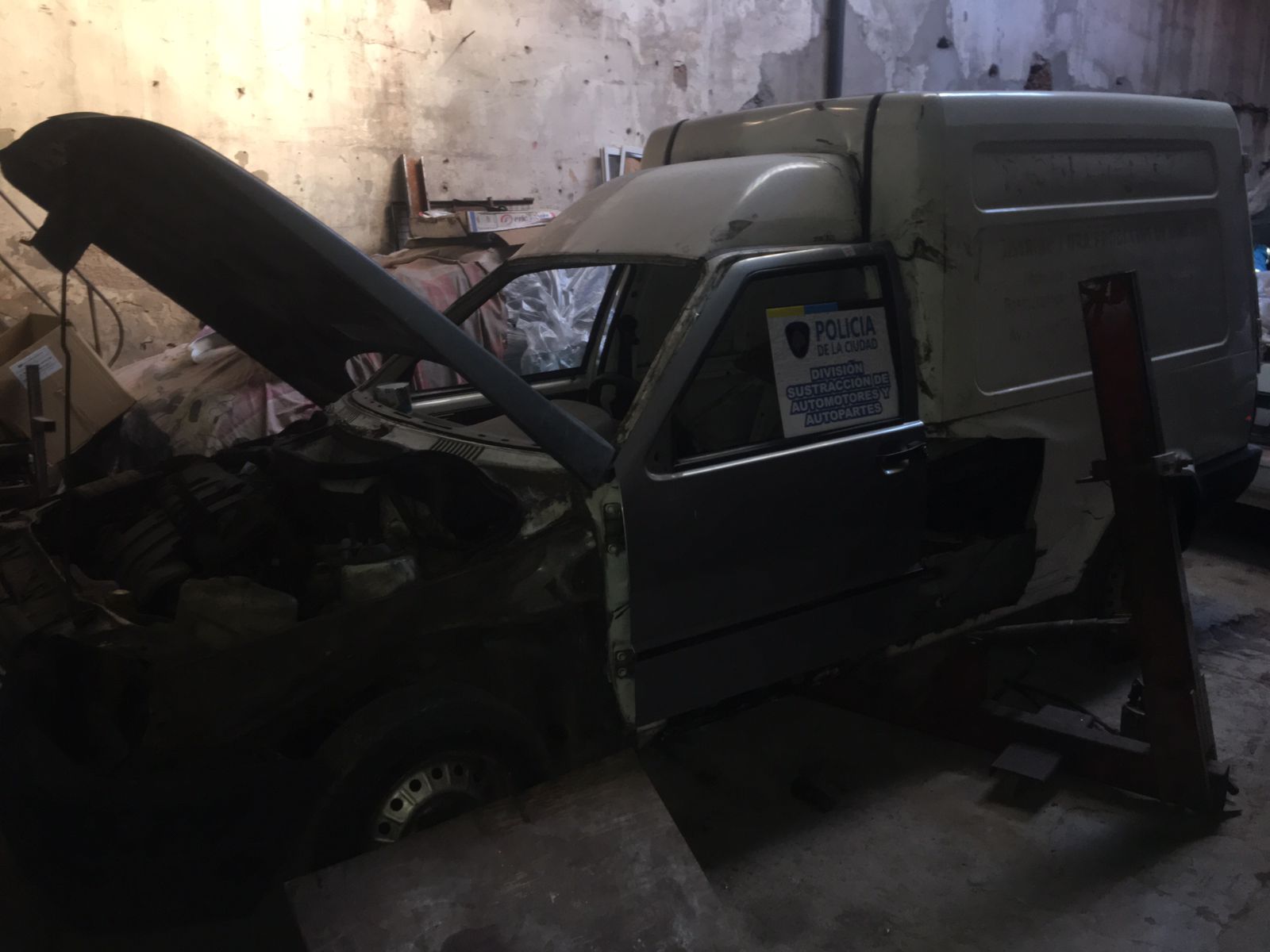Dentro del taller, los efectivos encontraron una camioneta Fiat Fiorino con la numeración del chasis suprimida, 7 puertas, 3 portones traseros, 1 tapa de baúl, 11 paragolpes, 13 guardabarros y 3 capots, todo carente de calcomanía del RUDAC (Registro Único de Desarmaderos y Actividades Conexas).