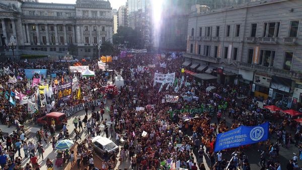 La huelga tuvo como actividades centrales el "ruidazo" que se realizó este mediodía en la calle y en los puestos de trabajo y la movilización del Congreso a Plaza de Mayo que se lleva a cabo bajo la consigna "No Estamos Todas".