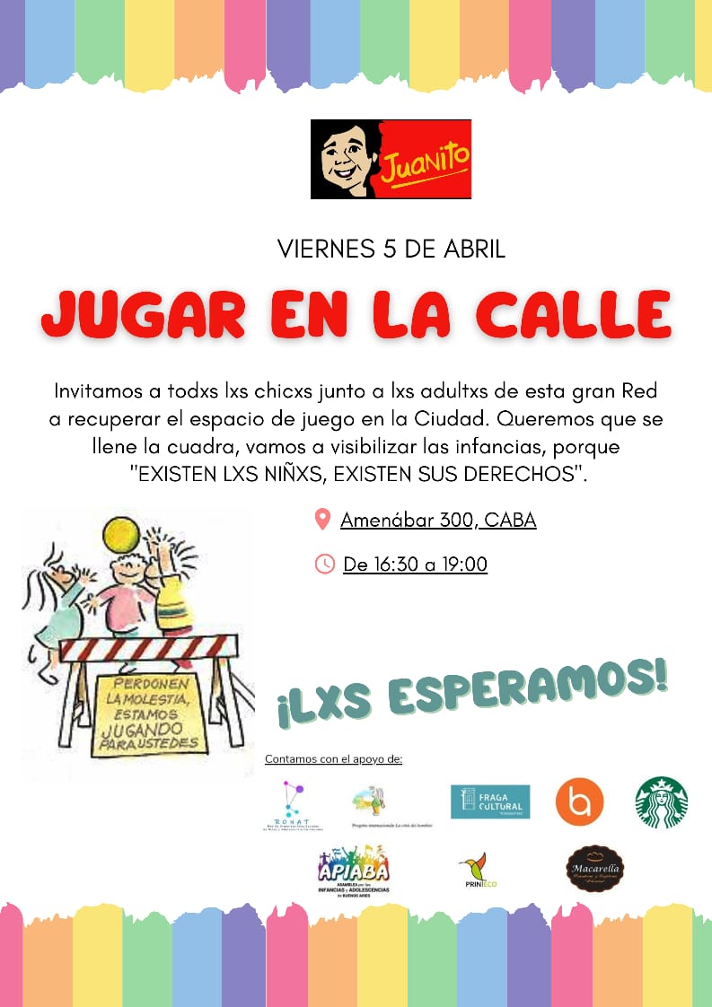 Fundación Juanito invita a todos lxs chicxs junto a lxs adultxs de una tarde maravillosa de juegos en nuestra Ciudad, Amenabar 300! Acércate volvamos a Jugar en las calles. De 16.30 a 19 hs