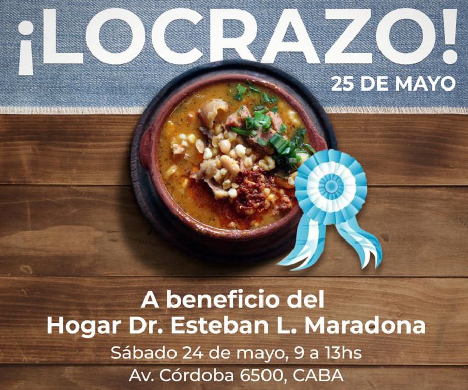 El próximo sábado 24 de mayo, de 9 a 13 horas, el Hogar Esteban Maradona organizará el “Locrazo del 25 de Mayo” en su sede de Avenida Córdoba 6500. La iniciativa invita a la comunidad a colaborar con alimentos no perecederos a cambio de un plato de locro preparado por los reconocidos cocineros Paulo y Facundo Kablan.