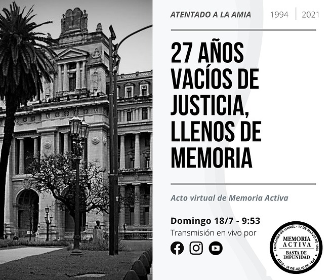 Agradecemos la difusión y presencia virtual. 27 años vacíos de justicia, llenos de memoria.