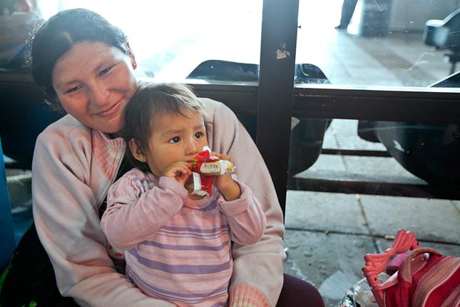 “Santino, un bebe de dos meses, había logrado dormirse en brazos de su madre. Rocío del Cielo Herrera contaba que desde el viernes a la madrugada que había llegado con su familia desde General Las Heras, provincia de Buenos Aires, estaba en el hall de Retiro esperando el colectivo que los iba a llevar a Paraná, a donde debían viajar por trabajo. «Con Santino nos arreglamos con cartones que le pongo abajo y camperas y así lo hago dormir», decía Rocío y agregaba: «Si te fijabas tenía ojeras». Ella también las tenía: contaba que no había pegado un ojo en toda la noche porque había personas que daban vueltas esperando robar algo. «No quiero que le pase nada a él», decía. Trataba de respetar sus horarios de comida, pero en los bares le cobraban tres pesos la mamadera con leche. «Ya no tenemos más plata. No sabemos cómo pedirlo ya: queremos irnos» , escribe Verónica Dema para La Nación del 7 de mayo de 2013.