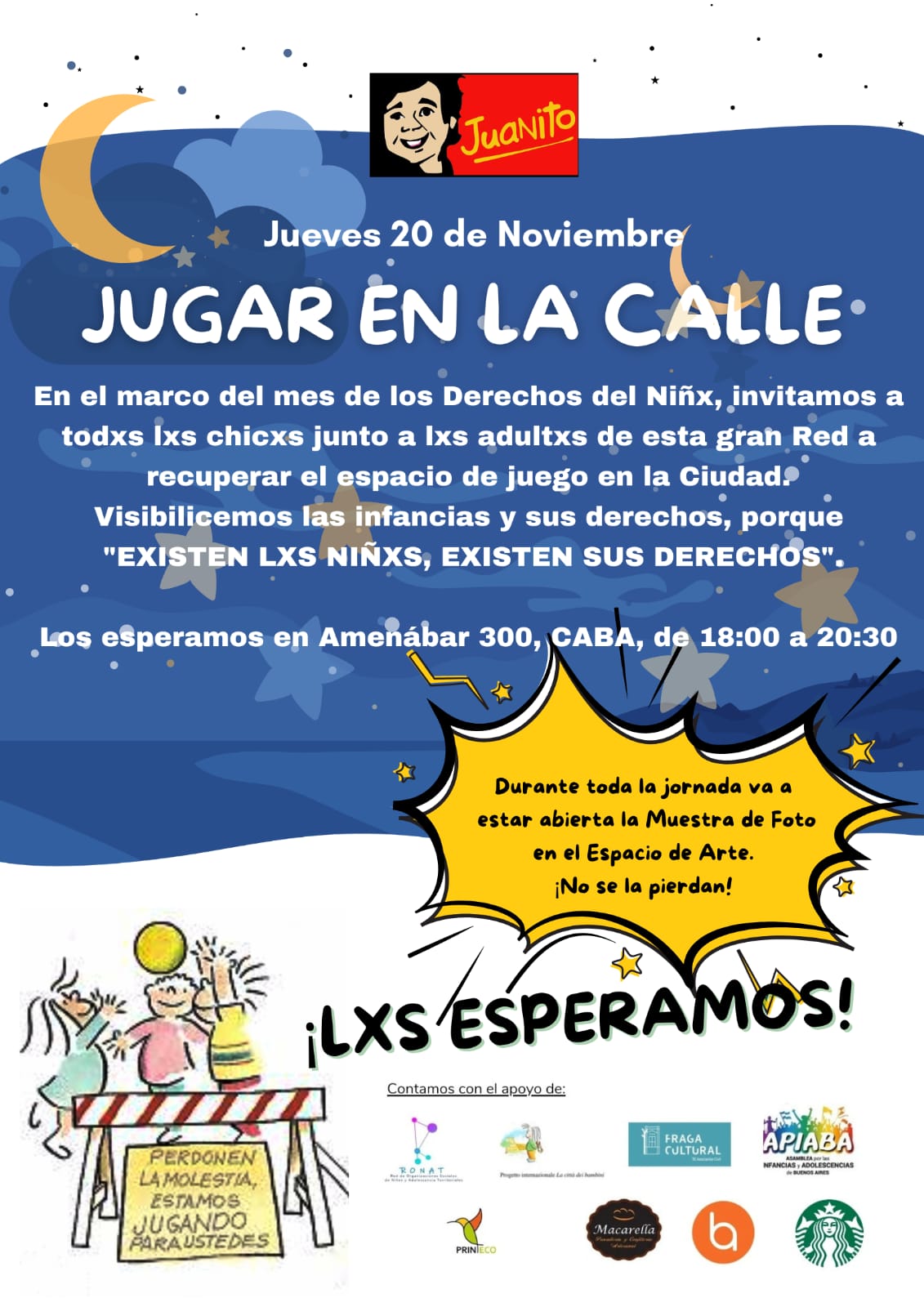 En el marco del mes de los Derechos del Niñx, invitan a todxs lxs chicxs junto a lxs adultxs de esta gran Red a recuperar el espacio de juego en la Ciudad. Visibilicemos las infancias y sus derechos, porque «EXISTEN LXS NIÑXS, EXISTEN SUS DERECHOS».