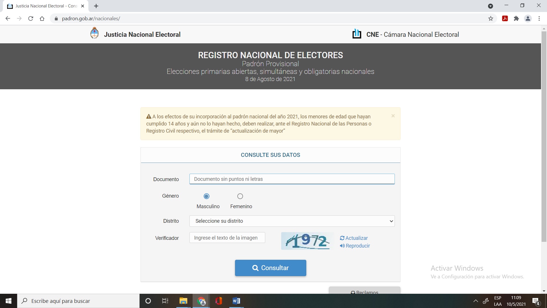 A partir de 7 de Mayo ya se pueden consultar el Padrón Electoral 2021 en www.padron.gob.ar por 15 días, los ciudadanos argentinos y extranjeros que viven en la Ciudad podrán consultar el Padrón Electoral Provisorio, donde se inscribieron los nombres de aquellos que se encuentran habilitados para emitir su voto en las próximas elecciones en este año.