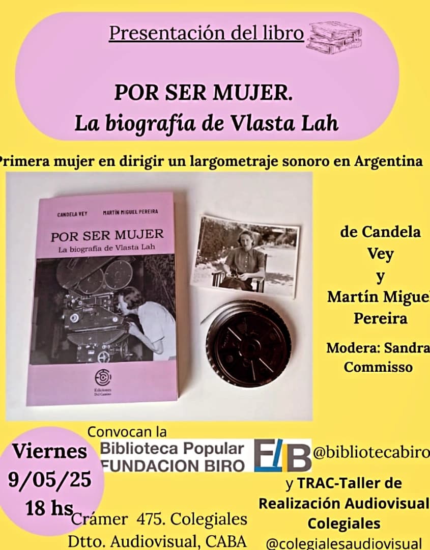 📅 La 📚 Biblioteca Popular Fundación Biro y el 🎥 Taller de Realización Audiovisual de Colegiales (@bibliotecabiro y @colegialesaudiovisual) invitan a la presentación del libro que rescata la vida de Vlasta Lah, ✨primera mujer en dirigir un largometraje sonoro en Argentina.