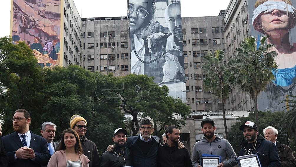 Se finalizó “El Corredor de la Memoria” con tres murales pintados por artista callejeros en el Hospital de Clínicas. Allí fue el hospital que brindo sus servicios a casi todas las víctimas de la explosión, el 18 de Julio de 1994. El atentado cobro la vida de 85 personas y más de 300 heridos. Los murales miden 50 metro de alto por 14 de anchos cada uno están ubicados sobre la calle Uriburu, entre Córdoba y Paraguay. Ubicado el tríptico en unos de los Laterales del Hospital. Elio Kapszuk fue el curador de este proyecto de arte urbano, los encargados de llevar la obra en marcha .La primera obra, firmada por Mariano Antedomenico, hace mención a la explosión; el segundo al trabajo, de Martín Ron, brinda homenaje al trabajo de los médicos, y el tercero, a cargo de Mariela Ajras, es una alegoría de la figura de la justicia que se desintegra en un reloj de arena.