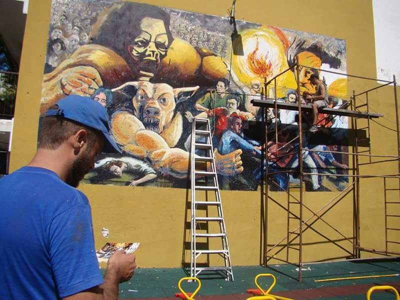 El mural se pintó en 2001 en la plazoleta Roberto Santoro, ubicada en Av. Forest, Fraga y Teodoro García. Formó parte de una serie de murales por la memoria que el grupo Chuneo Padilla pintó en las paredes del barrio de Chacarita, el único que resistió el paso del tiempo fue este que fue restaurado durante el último mes por los artistas.