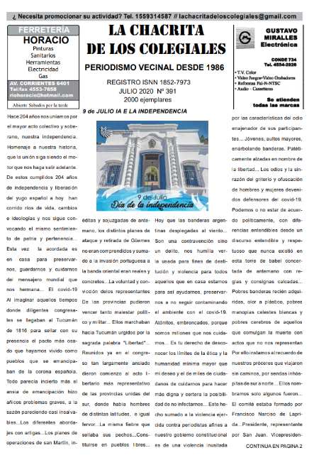 Disfruta tambien del periodico La Chacrita de los Colegiales!! Juio 2020