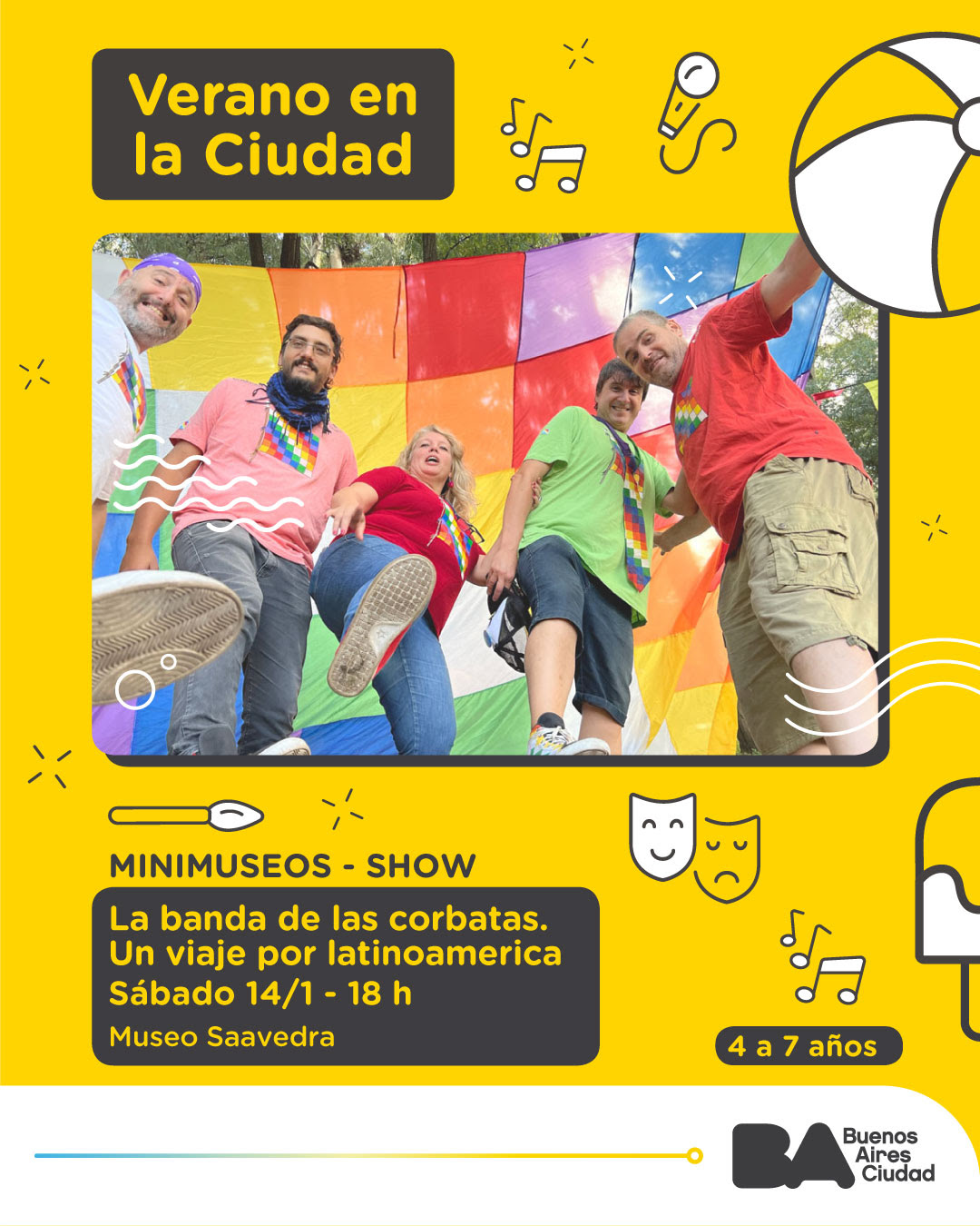¡Llegó el verano al Museo Saavedra! Te esperamos para compartir todas las actividades que tenemos preparadas. ️Del 6 de enero al 19 de febrero, vas a poder disfrutar de semanas llenas de música , teatro , artes visuales , talleres y mucha diversión para todas las edades En el Museo Saavedra, las actividades son de jueves a domingos, de 18 a 21hs. Las actividades son gratuitas incluidas en la entrada al museo. Para inscribirse, accedé al siguiente link https://linktr.ee/museosaavedra y luego buscás el evento al que quieras asistir. También podés acceder al link, haciendo click en la imagen de cada evento que aparecen debajo. La reserva tiene validez hasta 15 minutos antes del horario de inicio de la actividad.