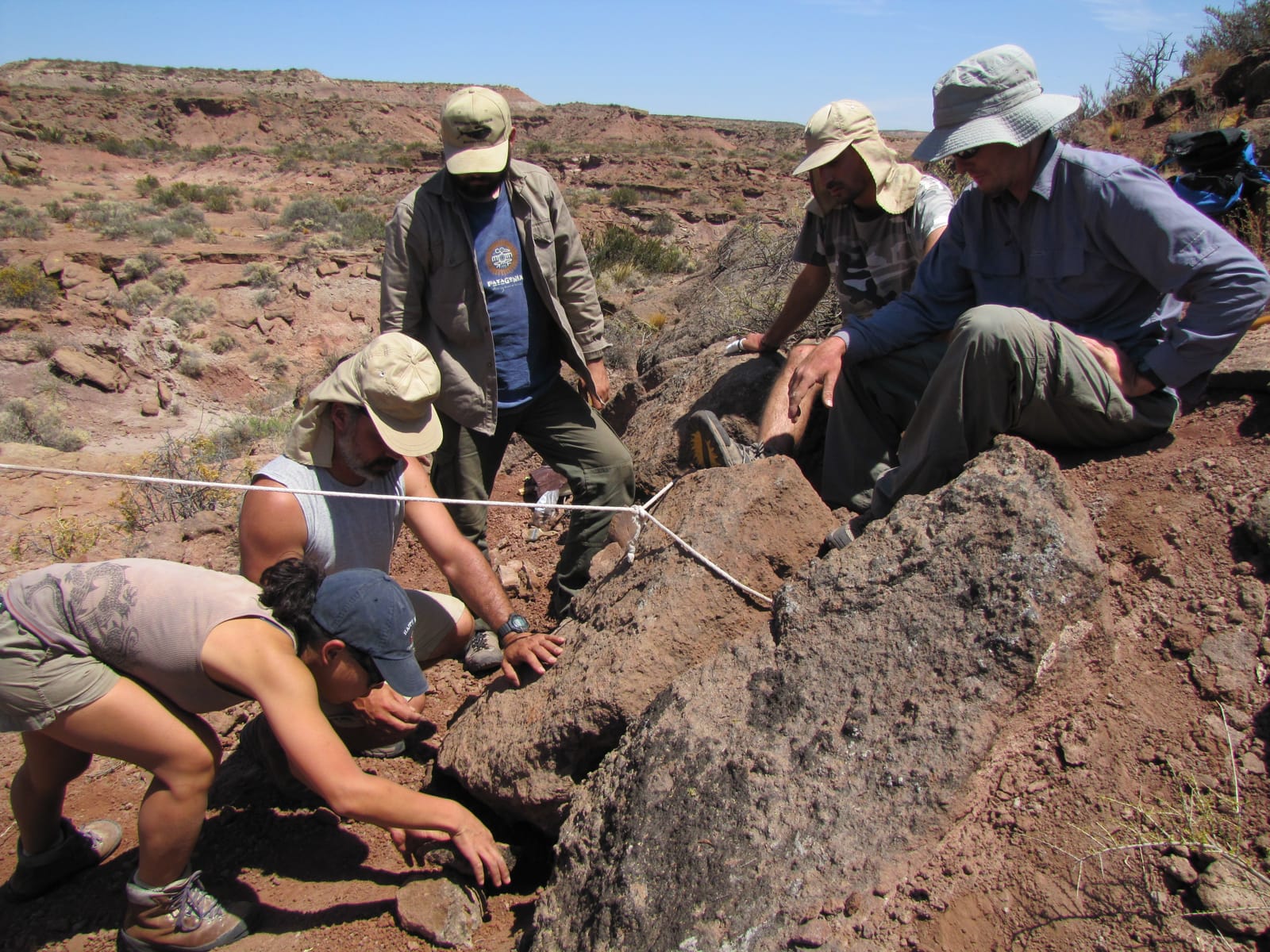 La formación Huincul, en cambio, arranca con un episodio volcánico, una erupción que dejó cenizas y, por encima de ellas, se hallaron sedimentos que fueron dejados por ríos, con más barro que arena. “Los animales que encontramos en esta parte, como el Meraxes gigas o el Argentinosaurus huinculensis, vivieron en un ambiente más húmedo. Había restos de bosques, araucarias y pinos, entre otra vegetación”, especifica. En esta época, y conviviendo con el rebaquisáurido recientemente encontrado, había también especies de carcarodontosáuridos, los mayores dinosaurios carnívoros que hubo en el mundo”.